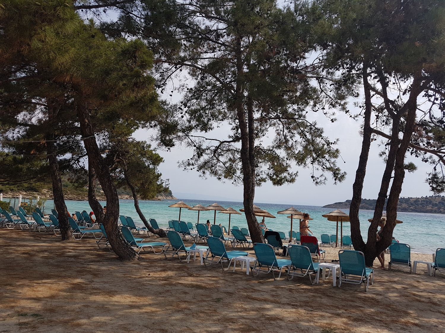 Сосновые леса спускаются прямо к воде, воздух пахнет хвоей, а море здесь считается самым красивым на всём Халкидиках.